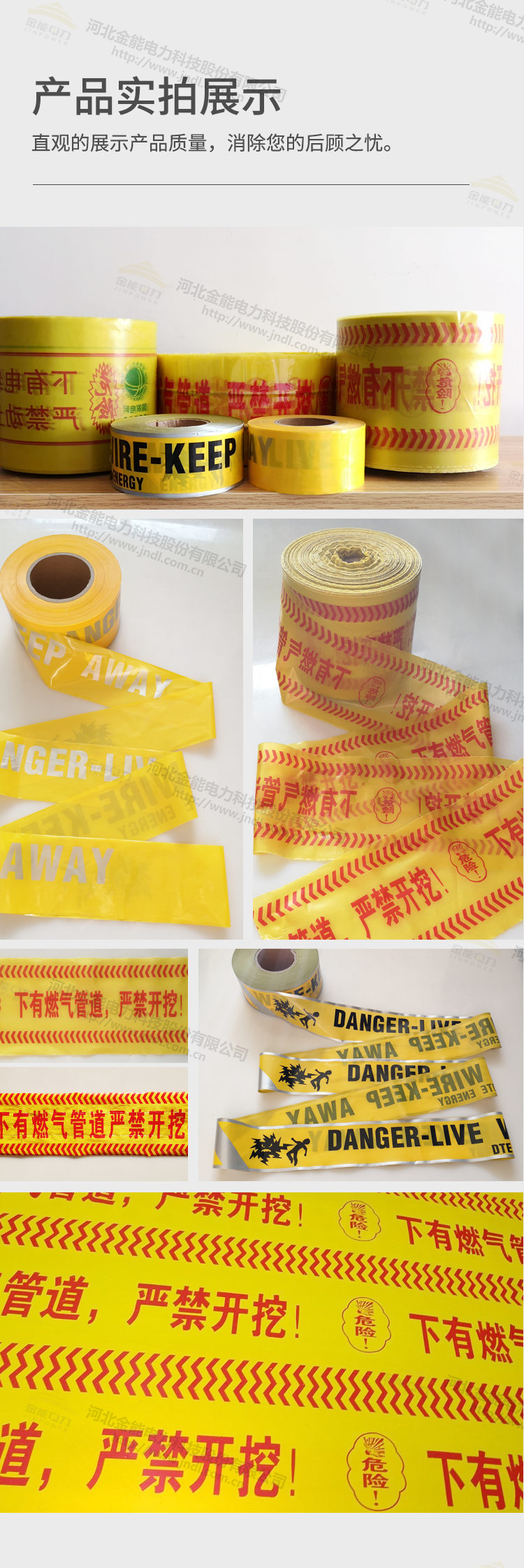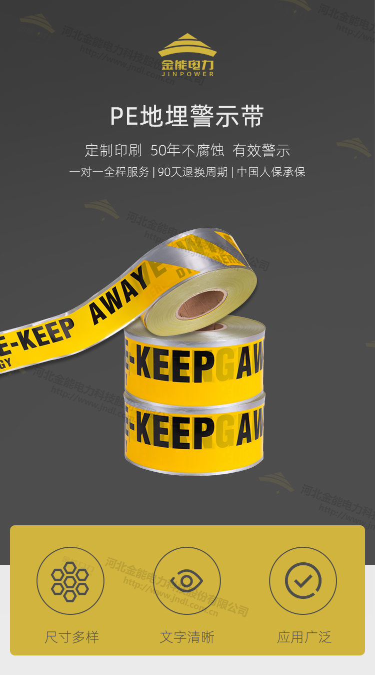 地埋式警示帶 下有電纜燃?xì)馐聚檸?PE燃?xì)夤艿罉?biāo)記帶可探測警示帶